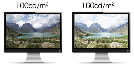 例えばモニターキャリブレーションツールやカラーマネジメントモニターでモニターの輝度目標のプリセットに160cd/m2という値があったとして、そのまま160cd/m2に調整してしまうと、多くの場合モニターが明る過ぎて、絶妙な明るさに写真を調整したつもりでプリンター出力を行なうととてつもなく暗い写真が出力されてしまう可能性が高いです。